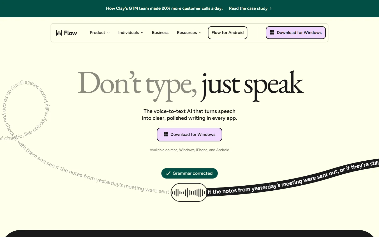 Wispr Flow is een dictatie-app waarmee je met je stem schrijft in gewone tekstvelden en apps. Dus als je zoekt naar een manier om sneller mails, notities of documenten te maken met je stem, is Wispr Flow waarschijnlijk veel dichter bij wat je bedoelt.